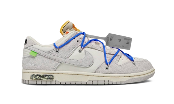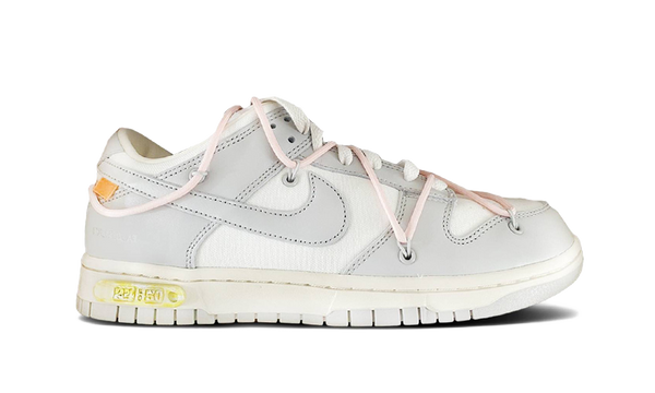 Virgil Abloh már korábban is kezelésbe vett már Nike Dunk Low sneakereket, de a Lot kollekcióban alaposan emelték a tétet! Ebben nem kevesebb, mint 50 színállás jelent meg: néhány kivételtől eltekintve a cipők közös jellemzője a szürke-fehér-krém felsőrész, a különbségeket pedig az anyaghasználat, a színes "kábelek" és egyéb Off-White tartozékok, illetve a talpon lévő a modell számát jelző táblák változatos színei jelentik.