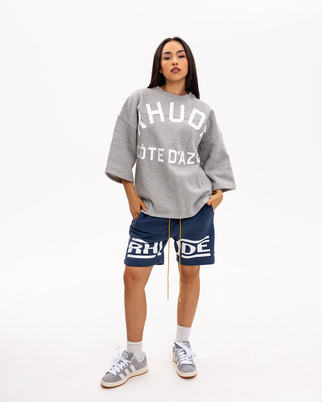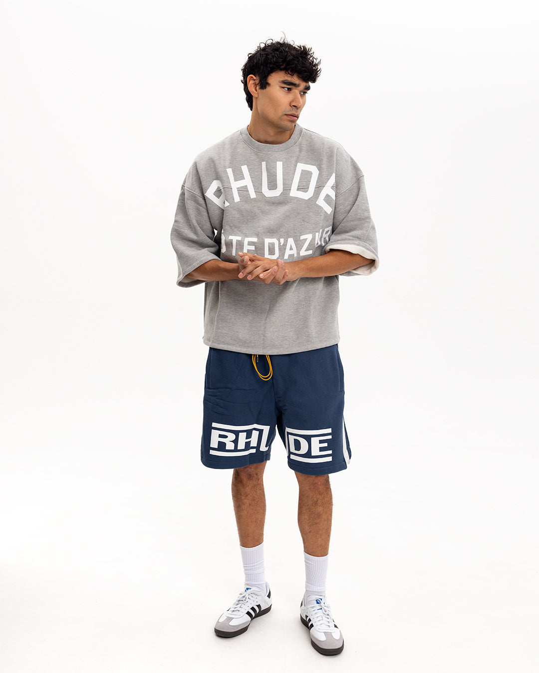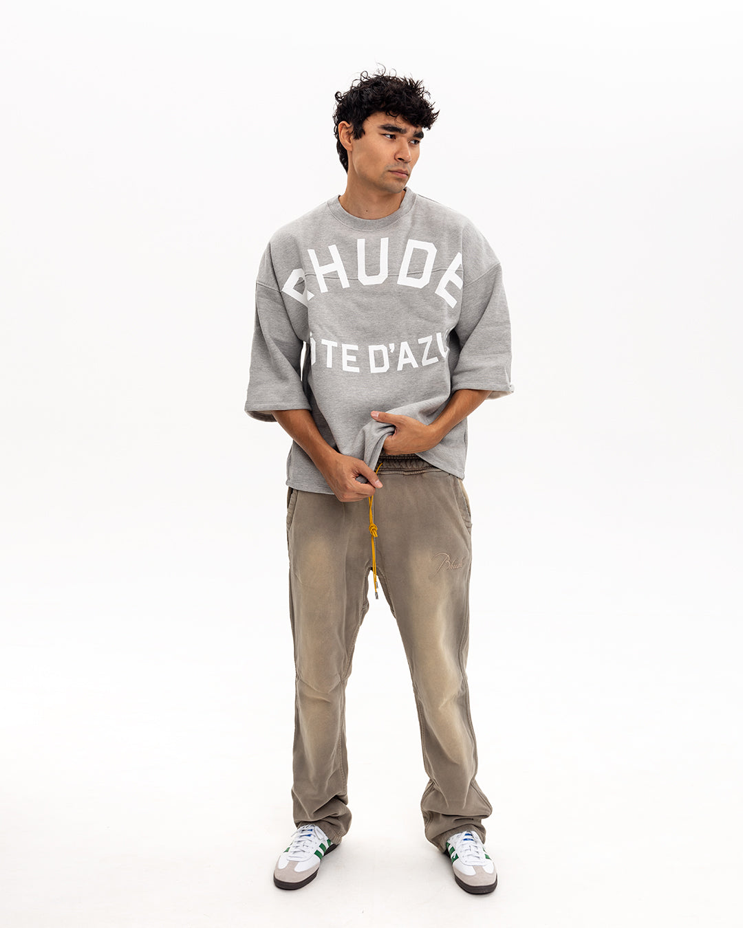 Rhude Tricou Boxy cu Mâneci Medii Cote D’Azur Gri Melanj
