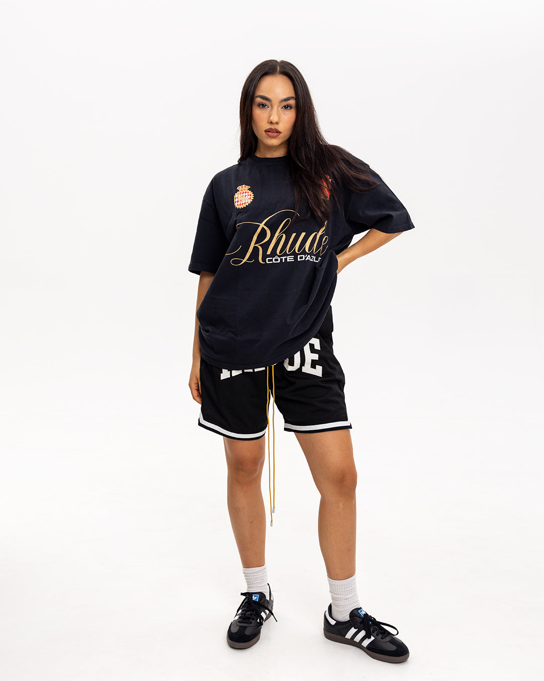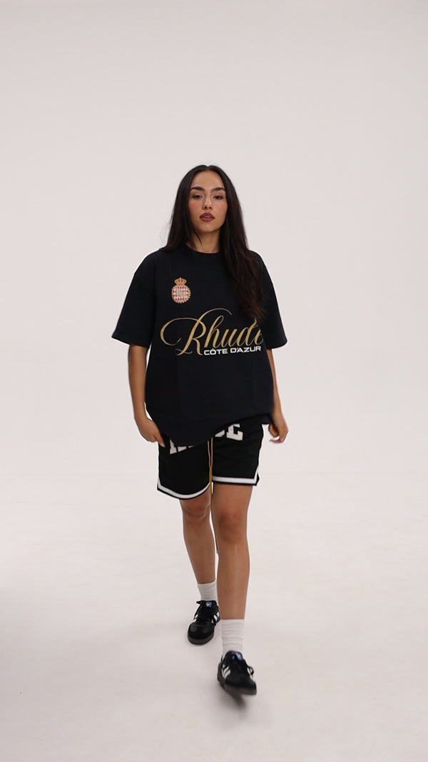 Rhude Șorturi de Baschet Colegiat Negru Alb